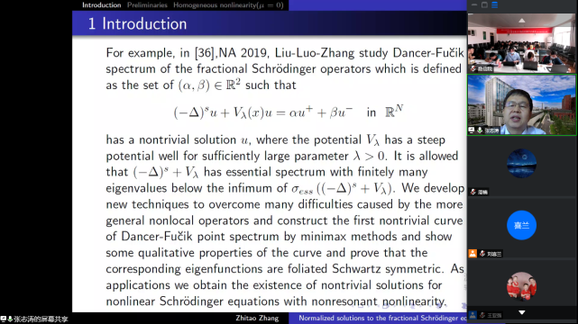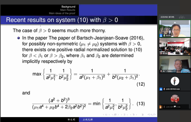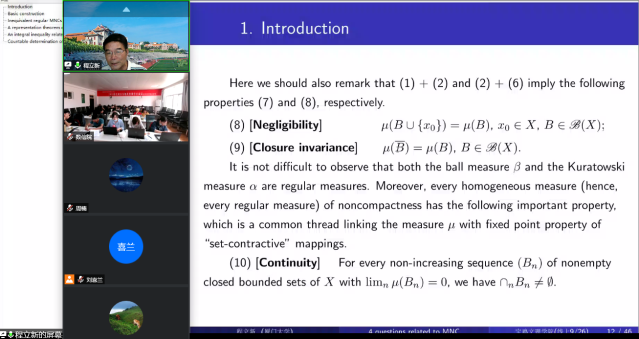 金秋丹桂万里香,桃李满园明清风。926日至27日,由国家天元数学西北中心支持、宝鸡文理学院和青海师范大学共同承办的“2020西北微分方程及应用学术会议,以线下(我校高新校区思贤楼424多功能会议室)和线上(腾讯会议,ID:57270383167,密码:0926)相结合的形式顺利召开。