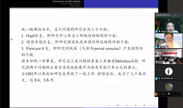 图为丁彦恒教授作报告()和韩茂安教授作报告()