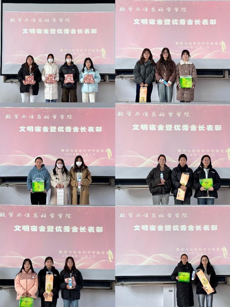 为构建健康、文明的公寓环境,提升学生文明素养,发挥公寓育人功能,数学与信息科学学院于11月15日至12月5日成功举办了文明宿舍与优秀舍长评选活动。