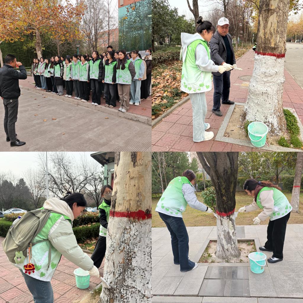 11月26日下午,我院师生党员及学生志愿者在高新校区图书馆北门开展了“挥刷护青木 冬阳暖初心”树木刷白主题党日活动。