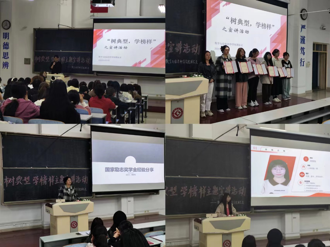 4月1日晚,数学与信息科学学院于新校区思贤楼420教室举办“树典型 学榜样”为主题的宣讲活动。我院2023级、2022级学生代表100余名参加宣讲活动。