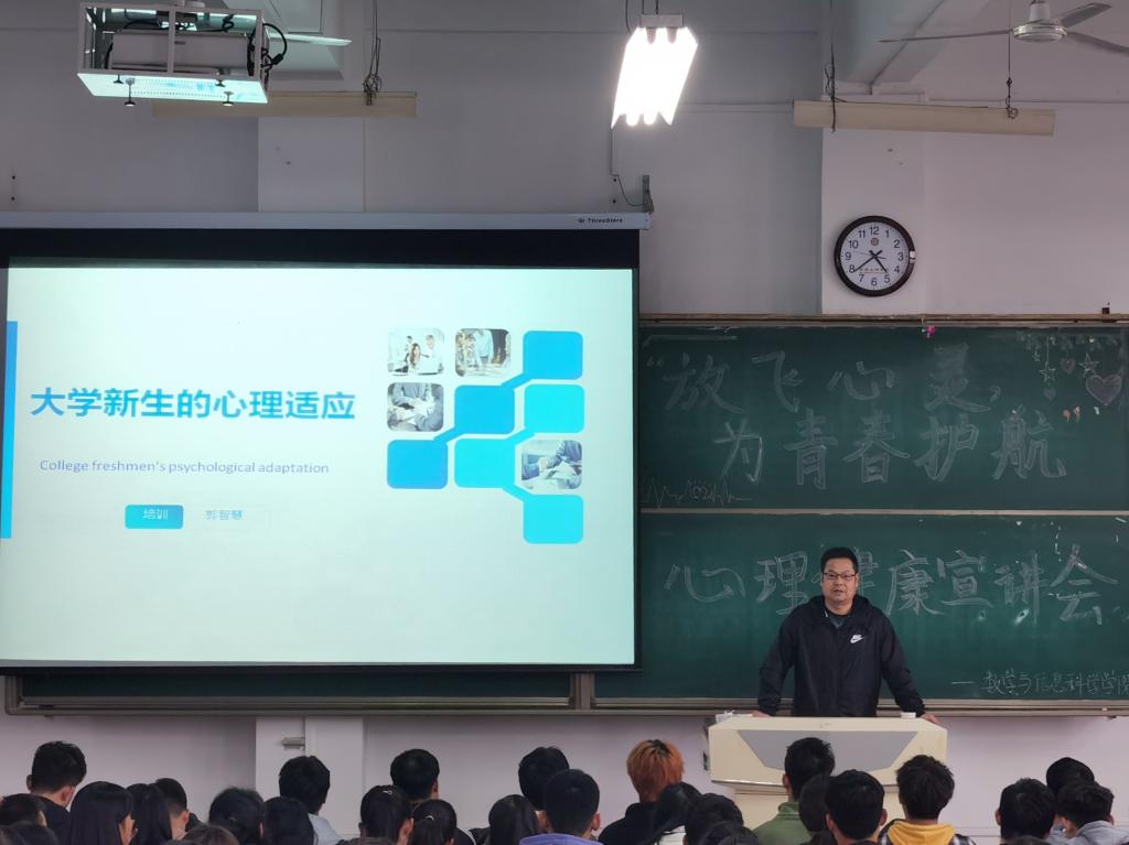 11月11日下午,数学与信息科学学院于思贤楼420教室开展以“放飞心灵,为青春护航”为主题的心理健康宣讲会,我院特邀陕西省心理卫生协会大学生心理咨询专业委员会常务委员,宝鸡市心理学会副会长郭智慧教授担任主讲。数信学院2020级全体学生认真地聆听了此次心理健康宣讲会。