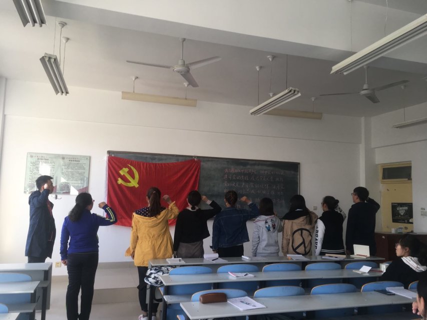 宣誓仪式在《国歌》中正式开始,张文婧宣读了党委组织部关于同意发展张博等8名同学为中国共产党预备党员的批复,赵川向他们发放了党徽及党章,理论学习本,赠送了《梁家河》。全体新党员在老党员赵川、张文婧的带领下,面向党旗举起右手庄严宣誓,表达了自愿加入中国共产党,为共产主义奋斗终身,随时准备为党和人民牺牲一切的真诚之心。新党员代表王媛发言表态,表示一定要以一个合格共产党员标准严格要求自己,认真学习党的理论、政策、方针和路线,努力践行入党誓词,发挥党员的先锋模范带头作用,引领我院学生刻苦学习、潜心实践,为建设中国特色社会主义练好本领。