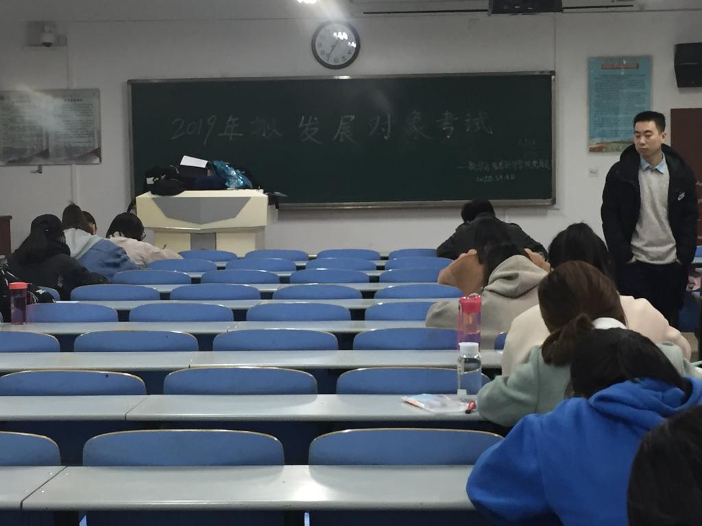 3月13日晚,数学与信息科学学院在思贤楼328教室对2019年上半年拟发展对象候选人进行党知识考试,36名拟发展对象同学参加了党知识考试。学生第一支书记赵川、第二支部书记张文婧全程监考。