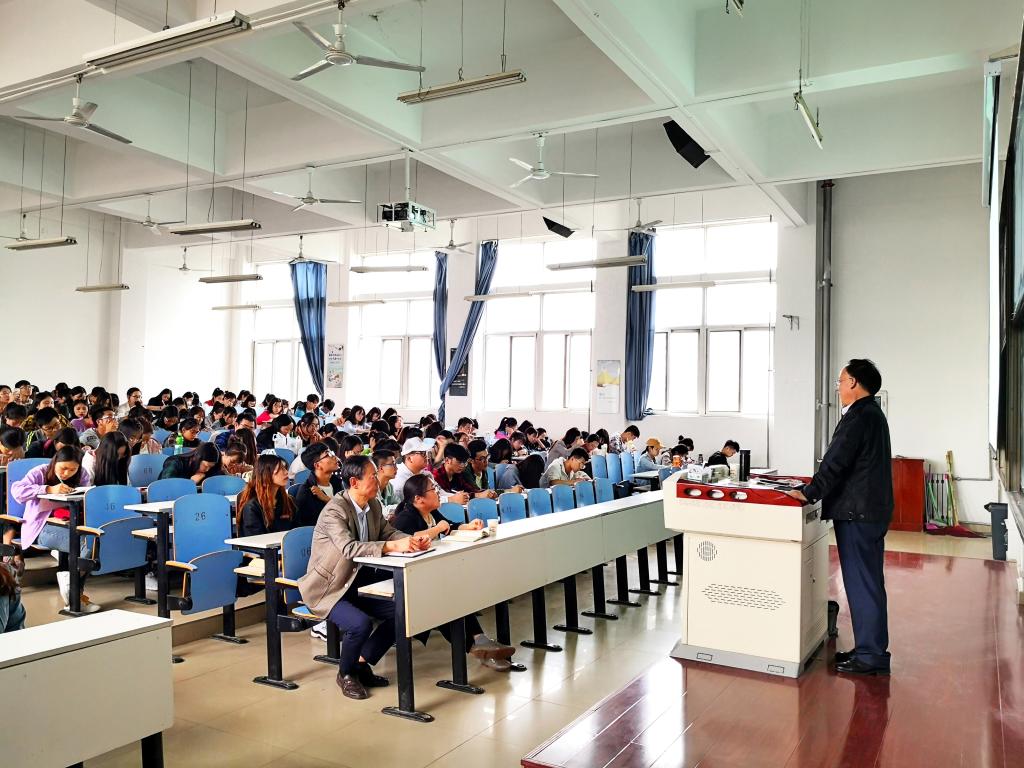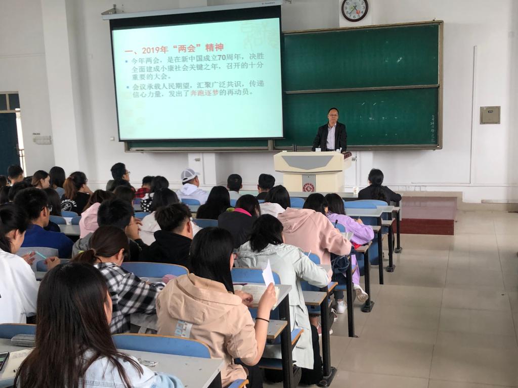 5月29日下午,学院在思贤楼420教室举办2018年“两会”精神宣讲会,邀请学校党委委员、党委统战部部长、“两会”宣讲团成员彭志启教授作了题为《用2019“两会”和全国教育大会精神统一思想和行动》的专题报告。会议由学院党总支书记郝满义主持,学生辅导员、全体学生党员和入党积极分子参加了宣讲会。