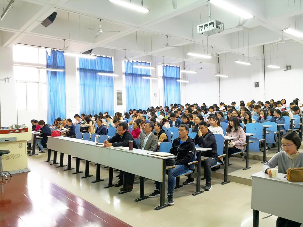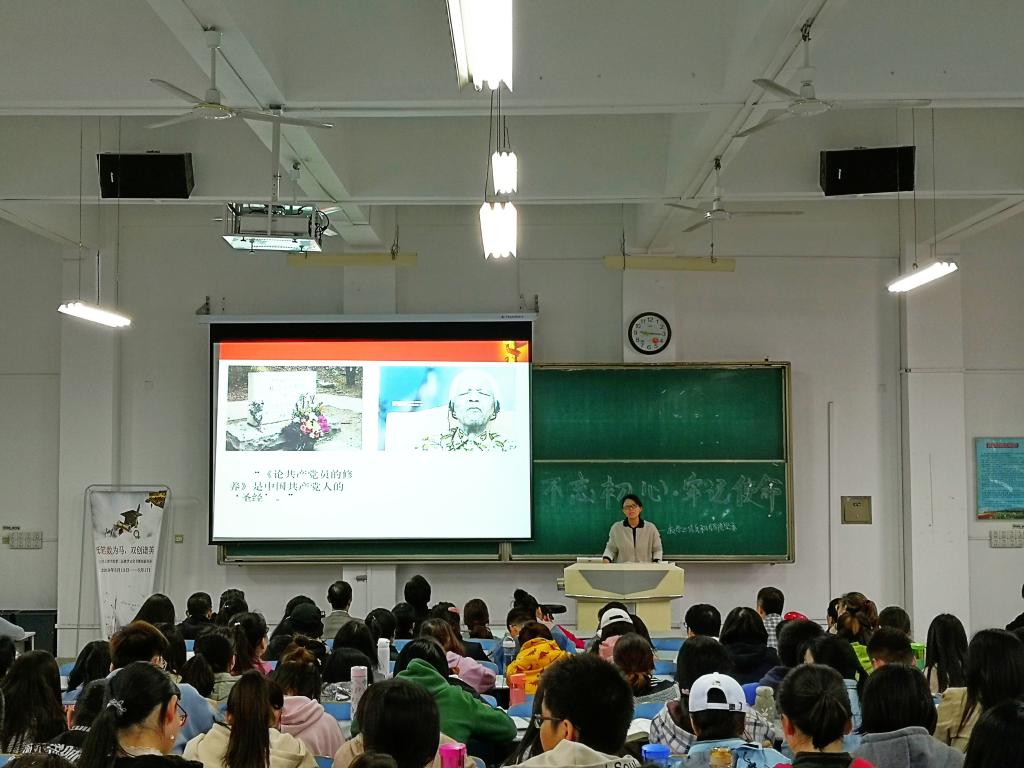 10月30日下午,数学与信息科学学院在思贤楼420教室举行“不忘初心、牢记使命”主题教育专题辅导报告会。校宣讲团成员马克思主义学院张丽老师应邀为全体师生党员、部分入党积极分子作了题为《锤炼党性修养践履初心使命》的专题报告,报告会由副书记王欢主持。