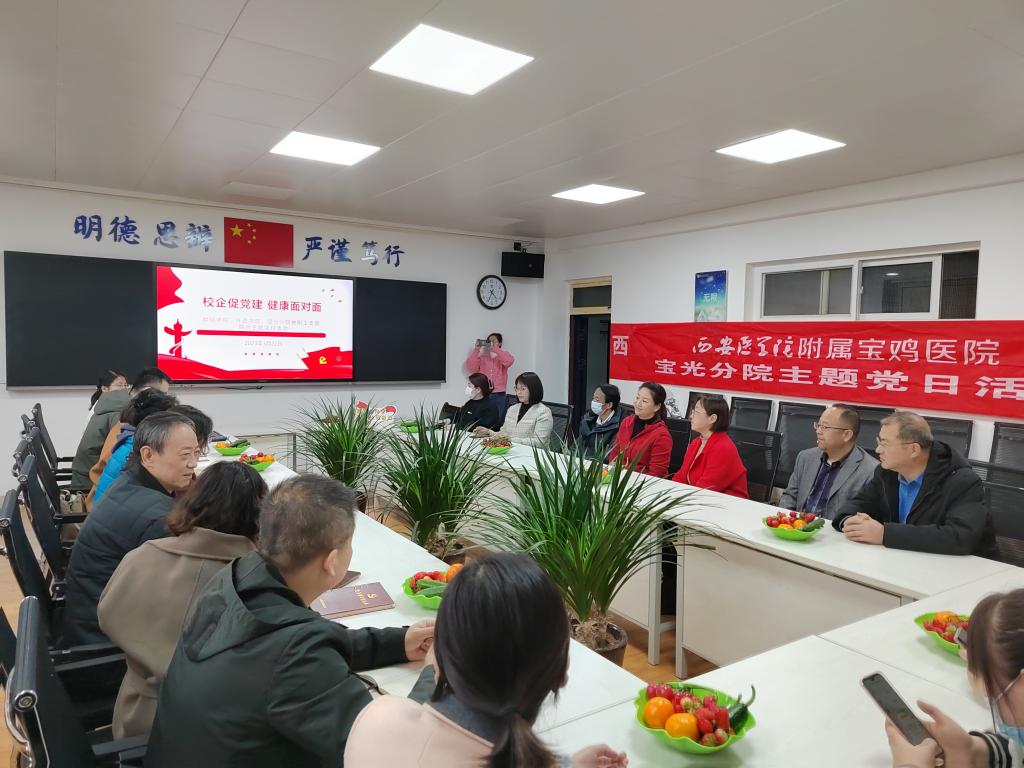 3月22日下午,外国语学院、数学与信息科学学院联合409医院宝光分院支部在高新校区思贤楼424室数学与信息科学学院报告厅开展了“校企促党建,健康面对面”主题党日活动。活动由外国语学院教工支部书记耿秀萍和数学与信息科学学院教工支部书记李璧镜联合主持。