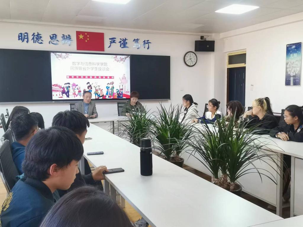 11月1日下午,我院在思贤楼424会议室召开了数学与信息科学学院民族暨省外学生座谈会。学院党委书记郝满义、副书记王欢,学院民族学生和2023级省外学生代表参加了会议。会议由副书记王欢主持。