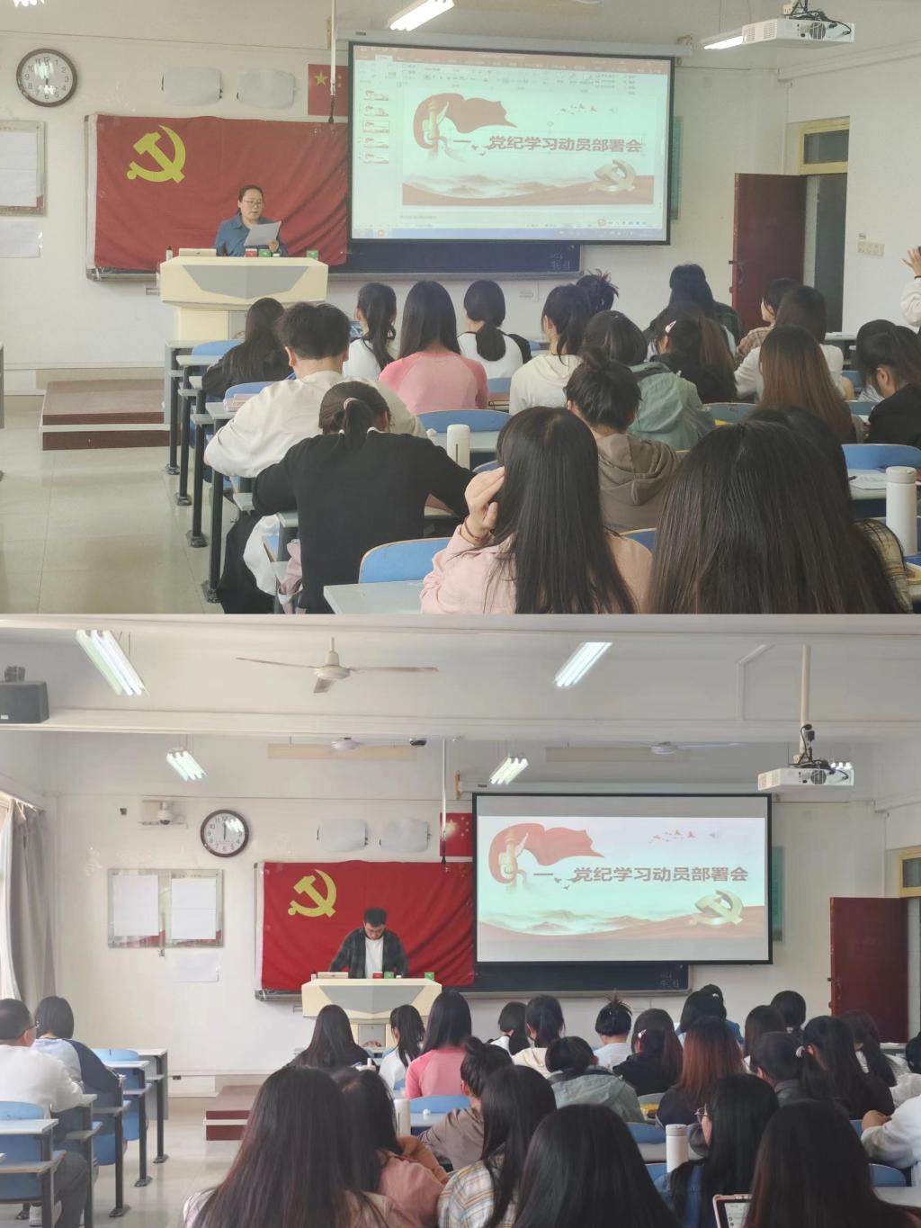 4月17日下午,我院学生党支部全体党员在思贤楼426教室开展党纪学习教育动员会,学生第一、二支部全体党员参加了会议,学生第二党支部书记张文婧主持会议。