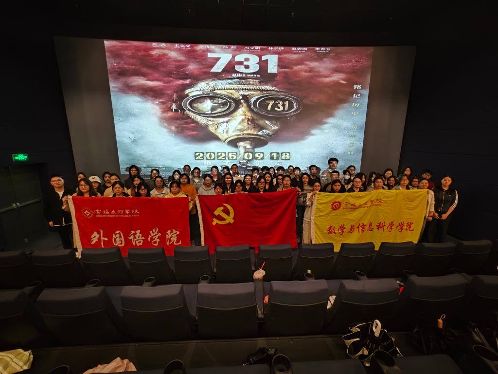 9月18日下午,数学与信息科学学院党委联合外国语学院党委组织部分师生前往奥斯卡影院集体观看重大历史题材影片《731》。此次观影主题为“以史为鉴、弘扬抗战不屈魂,铭记国殇、砥砺前行谱新篇”,旨在教育广大师生铭记历史、勿忘国耻,警钟长鸣、吾辈自强。