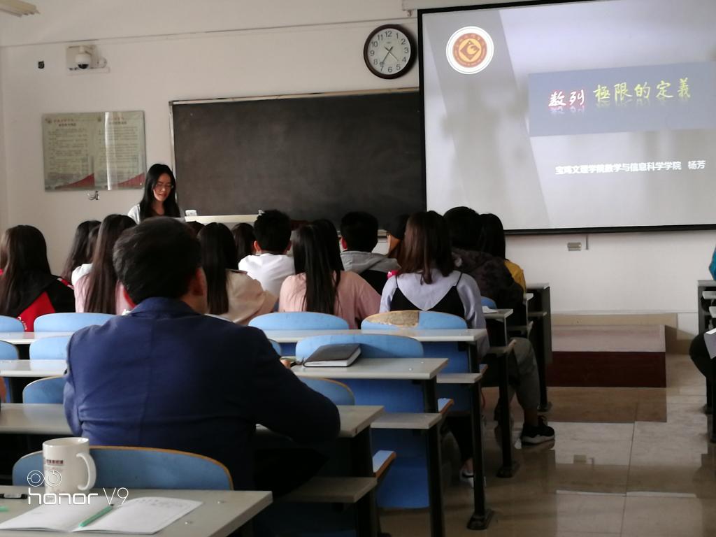 2019年5月15日下午,数学与信息科学学院举行了教学名师示范课。本次示范课由我院教学副院长杜红珍主持,在思贤楼425教室举行,数信院所有在职教师参加了本次示范课。我院副教授、陕西省首届高校课堂教学创新大赛三等奖获得者杨芳老师为全院教师和部分学生上了一堂极具吸引力的高等数学示范课。授课内容为高等数学与初等数学分界线的内容、也是最难理解的内容—数列极限。杨老师采用板书与PPT相结合的方式进行讲解,用PPT高效而形象的向各位老师和同学展现了数列极限的发展由来,用粉笔推导重现了极限概念的严格定义。课堂氛围活跃,显著地调动了学生思考的积极性,同时增加了教学的趣味性。杨老师课堂语言表达精准且又通俗易懂,分析思路独到,将难点讲解的十分透彻。达到了很好的教学效果,受到了学生和各位老师的一致好评。(文/邓银娟)