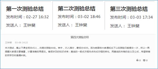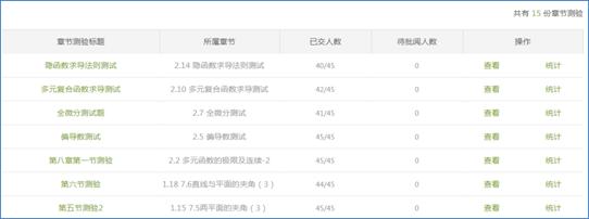 利用学习通平台的章节测试功能,每节课讲授完后进行重难点知识的测试,实时掌握学生学习的效果。测试完引导学生分析错误的原因,是否混淆了定义,是否忽视了隐含条件,运算是否正确,指导学生反思错题所涉及的知识,帮助学生形成有效的知识网络,提升学生解决问题的能力,实现有效学习与有效教学的结合。