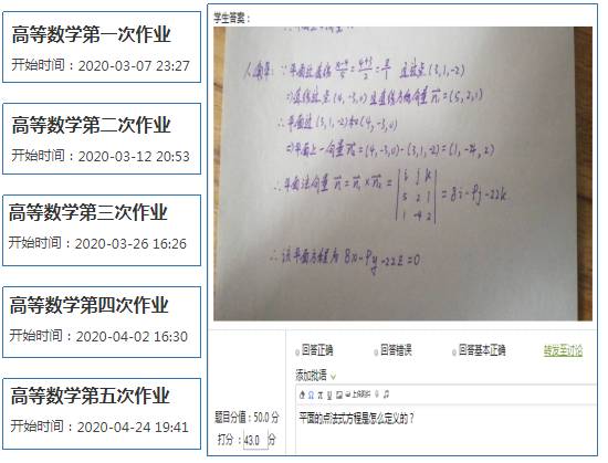 同时,在学习通平台发布课后作业,学生以拍照形式上传后,王钟斐老师再进行批阅。对一些典型的作业会及时发布在课堂中分享,给予其他同学榜样的力量,点燃学生的学习激情。