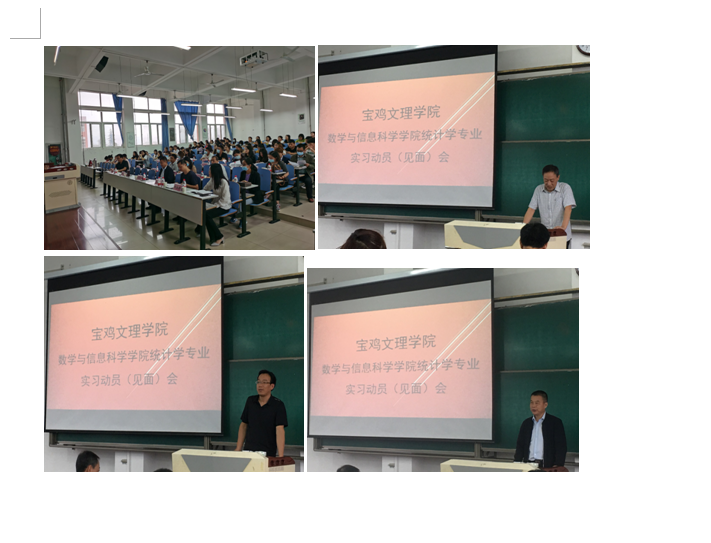 9月9日下午15:00,数学与信息科学学院在思贤楼420召开统计学专业实习动员会,本次会议由数信学院院长刘淳安主持,市统计局党组成员田海宁调研员、办公室主任吴涛、数信学院党委书记郝满义、副院长杜红珍,各有关实习单位实习领导共计20余人以及2017级70余名实习学生参加了此次会议。