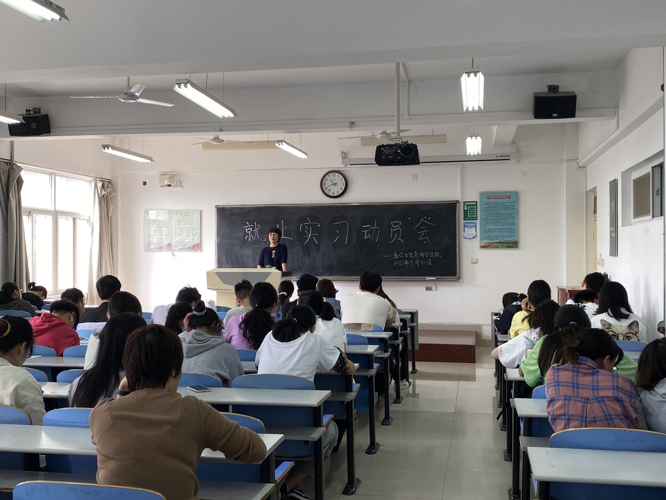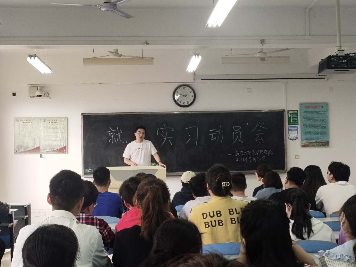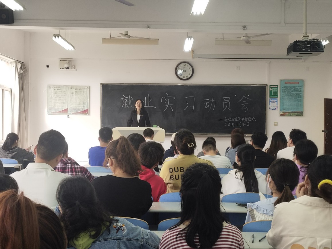 2021年9月30日,数学与信息科学学院在思贤楼425教室召开了2021年教育实习动员大会,数信学院党委副书记王欢、副院长杜红珍、实习带队教师安海龙以及数信学院2018级数学与应用数学专业全体学生参加了会议。