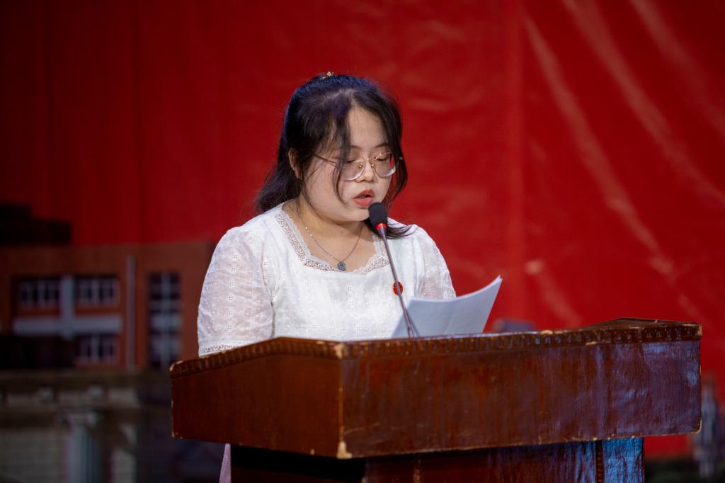 2021级数学与应用数学1班孙丽婷同学代表我院在校生为2022届毕业生致欢送辞,祝福学长学姐们前程似锦,未来可期。2018级统计学1班张欢同学代表我院全体毕业生向在校期间所有关心、帮助过她们的师长和亲友表示最衷心的感谢。她们会带着母校和老师们的期盼和嘱托,在未来路途中做具有时代使命感和责任担当的高素质标准人才,展现数信学子的风采!