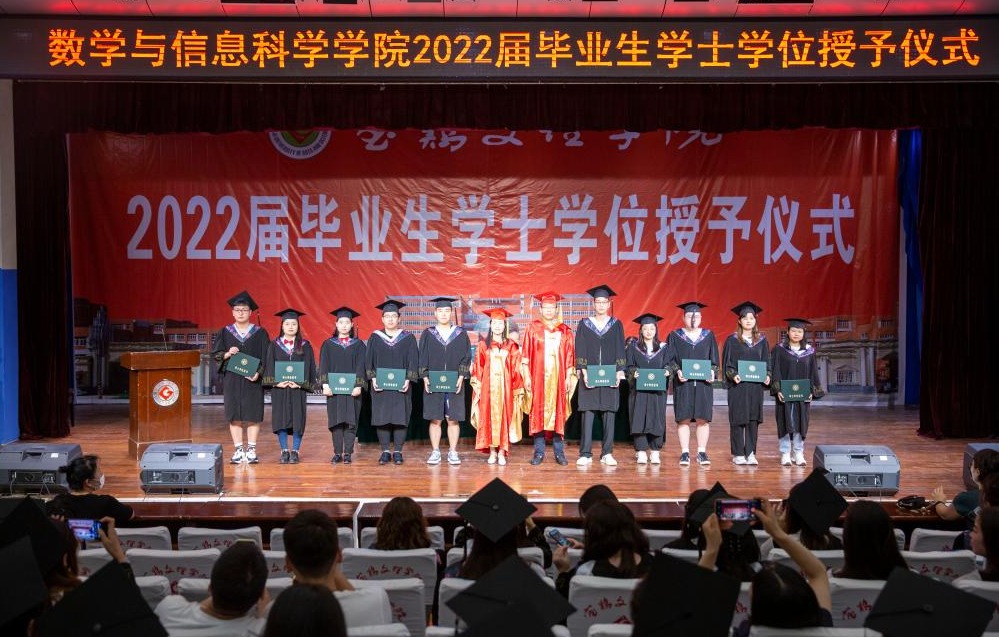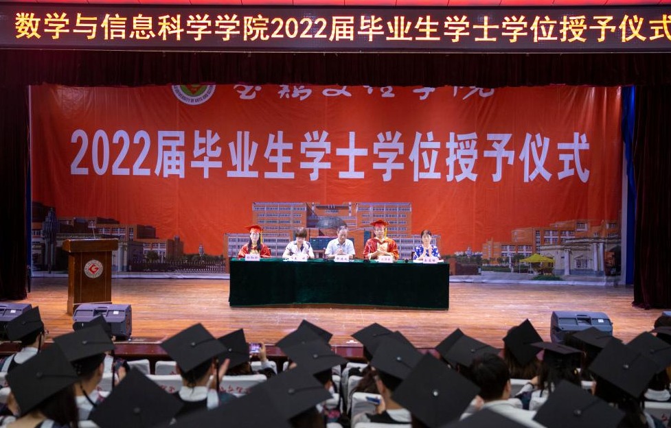 2022届毕业生代表、数学与信息科学学院教师代表、辅导员、班主任代表等100余人参加了毕业典礼暨学位授予仪式。(数学与信息科学学院党政办公室)