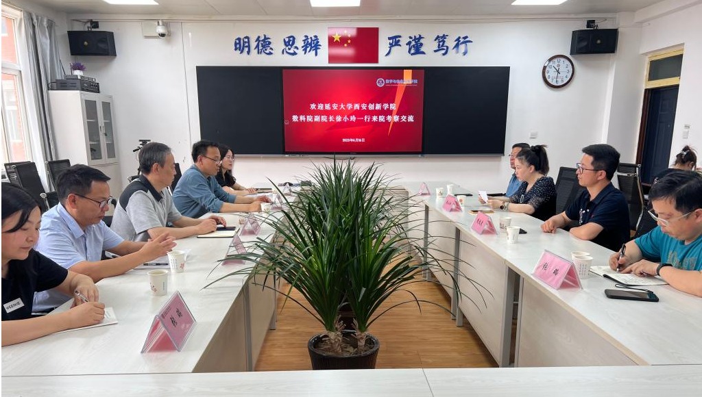 6月16日上午,延安大学西安创新学院数据科学与工程学院徐小玲副院长一行4人来我院交流访问。学院党委书记郝满义,院长刘淳安,副院长杜红珍及各系系主任在会议室与刘小玲一行进行了座谈。