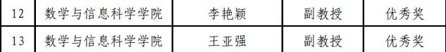 在11月3日我校发布的《关于公布宝鸡文理学院2023年本科教学质量奖评选结果的通知》中,我院李艳颖、王亚强两名老师被我校授予“2023年本科教学质量奖”。