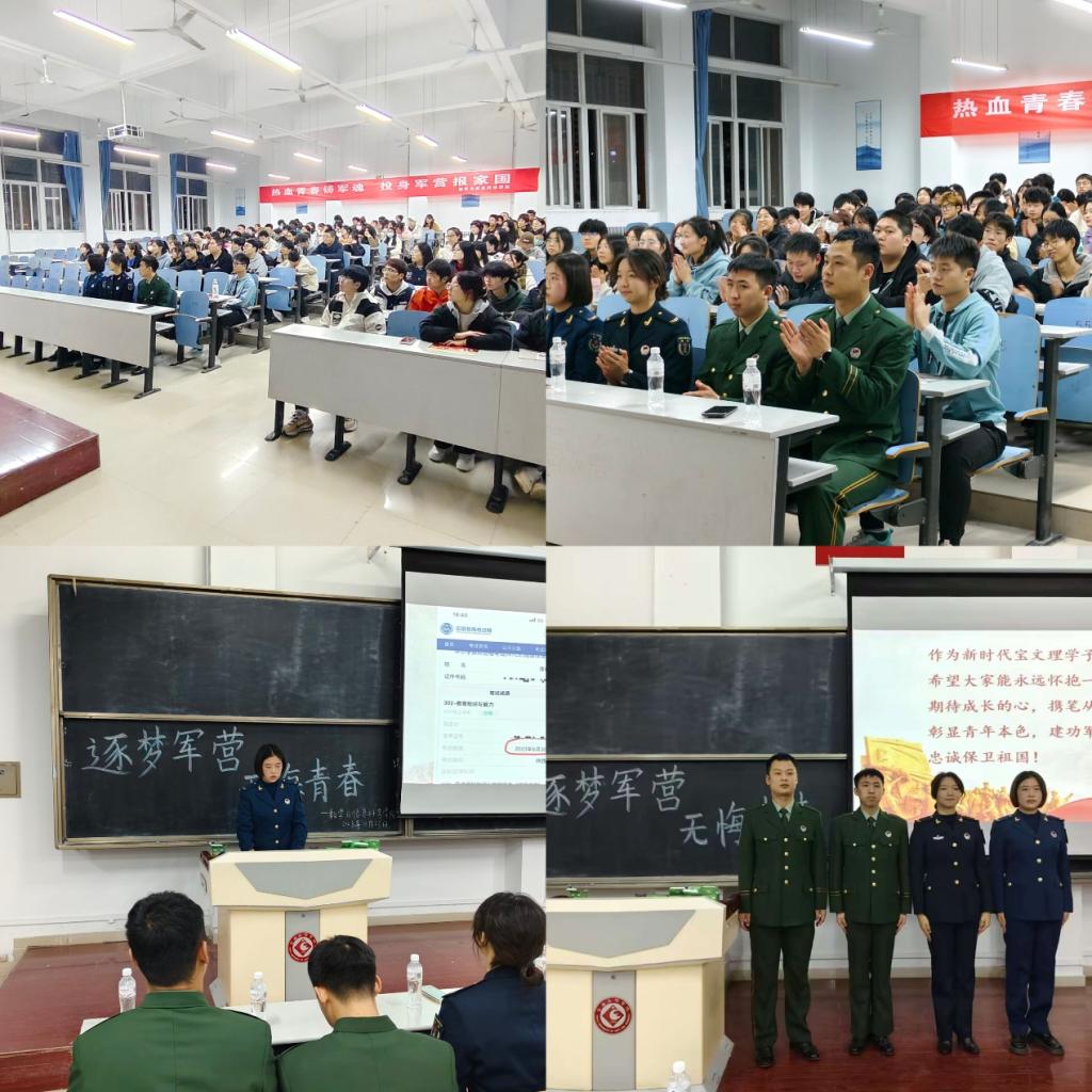 为进一步落实国家征兵工作要求,帮助青年大学生全面了解征兵政策,激发应征入伍热情,11月23日,学院在思贤楼408教室开展“逐梦军营,青春无悔”征兵入伍宣讲活动。我院2020级毕业生、部分2021级、2022级学生共计160余人参加了活动,活动由辅导员魏研主持。