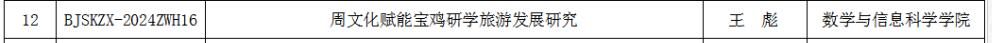 近日,宝鸡市哲学社会科学工作领导小组办公室公布了宝鸡周文化研究专项课题立项名单,我院王彪副教授获批其中1项课题。课题立项后,根据完成情况及结项评审等次,拨付数额不等的资助经费。