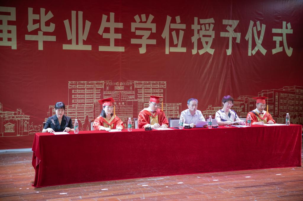 学位授予仪式在庄严的国歌声中拉开序幕。刘淳安宣读了2024届毕业生的硕士学位和学士学位授予决定。刘淳安,杜红珍、姜洪领分别为硕士学位和学士学位获得者代表扶正流苏、颁授学位证书,并合影留念。
