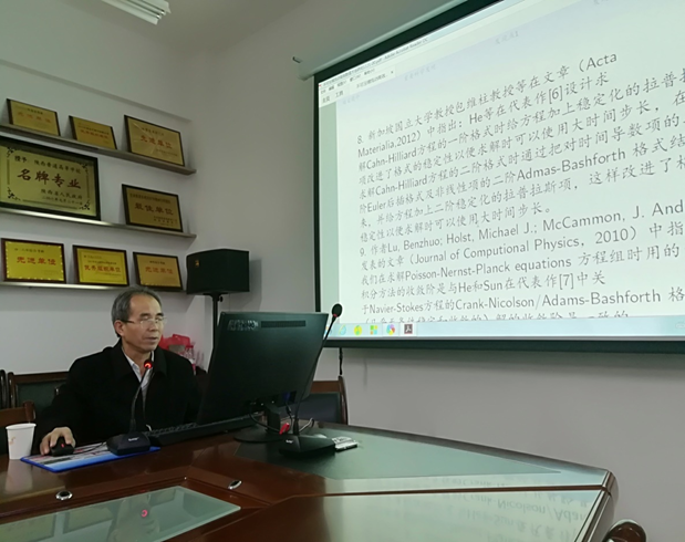 11月22日下午,西安交通大学二级教授、博士生导师、享受政府津贴专家、新疆大学“天山学者”何银年教授在思贤楼419做了题为“不可压缩流动高效数值方法研究”的学术报告。报告由数学与信息科学学院院长李剑主持,学院相关专业教师30余人参加了报告会。