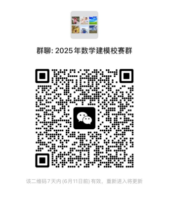 1.报名方式。请有意参赛的学生于2025年6月11日前直接进入“2025年数学建模校赛微信群”,二维码如下: