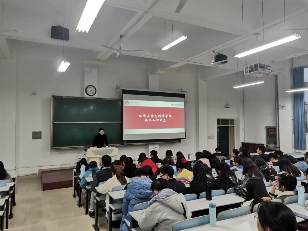 为了增强学生的宿舍安全意识,普及安全防范知识,数学与信息科学学院团总支于2019年11月27日在思贤楼408教室召开了安全知识讲座。