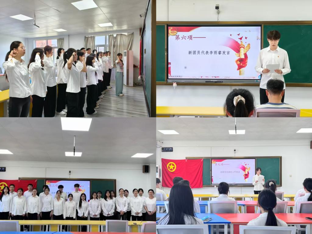 入团仪式在激昂的国歌声中拉开帷幕,李萍宣读新发展团员名单,与魏研一起为新团员们颁发、佩戴团徽。李科婷带领全体团员们高举右拳,庄严宣誓。入团介绍人代表王佩佩宣读《团章》,让新团员们进一步明确了团员的权利与义务。新团员代表李雨睿表达了对加入共青团的激动与感恩,并承诺将以实际行动践行入团誓言,努力学习,积极进取。老团员代表赵心可分享了自己在团组织中的成长经历,鼓励新团员们在学习和生活中发挥模范带头作用。李萍对新团员们提出殷切期望,希望他们时刻牢记入团誓言,严格要求自己,在学习、生活各方面展现新时代共青团员的风采。最后仪式在激昂的团歌声中圆满结束。