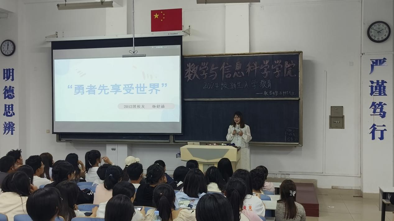 9月22日晚,我院数学与应用数学专业2012级校友宝鸡市第一中学教师杨舒涵应邀在思贤楼420为全体新生做报告
